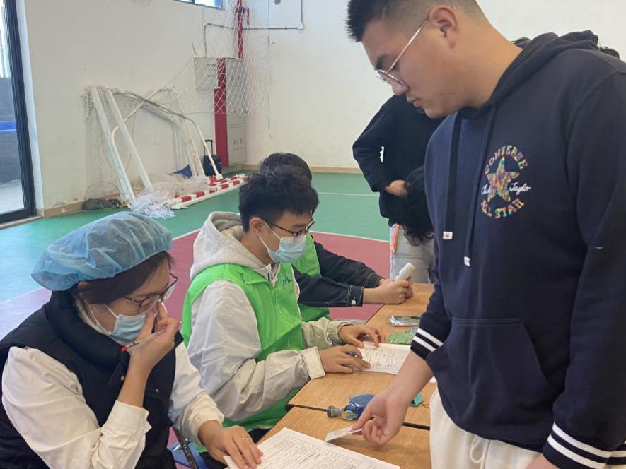 中午11:50,3044AM永利第一批无偿献血的同学们聚集在临港校区一教102教室完成《献血登记表》的填写工作,紧接着前往体育馆进行献血。在现场医护人员和志愿者们的引导下,参与志愿献血的同学们按照顺序依次进行现场验证、体检、抽血和观察休息等环节,一步一步完成献血前的检查工作,走到献血区时,同学们脸上洋溢着青春的笑容,还有的同学已经是大学期间第三次参加志愿献血活动了。