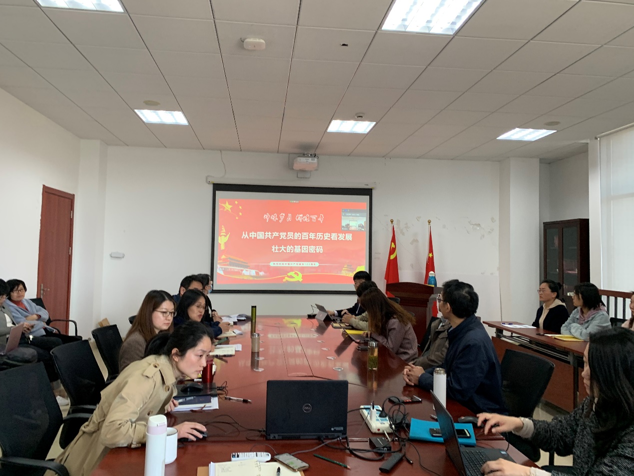 此次主题活动邀请了华东师范大学马克思主义公司速继明教授作题为《从中国共产党的百年历史看发展壮大的基因密码》的党史学习专题辅导报告。速继明教授结合党史,具体从中国共产党韧性品质的历史追溯,中国共产党何以具有历史韧劲,中国国家治理“韧性”的恒久展望三个方面带我们回顾了党的历史,从历史中探究党的韧性品质及在“站起来、富起来、强起来”阶段的表现。带领我们共同从历史中挖掘党成长背后蕴含的基因密码。