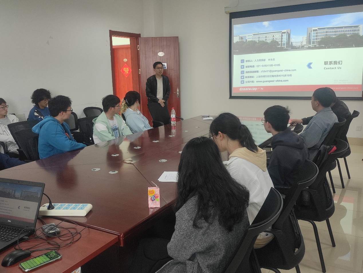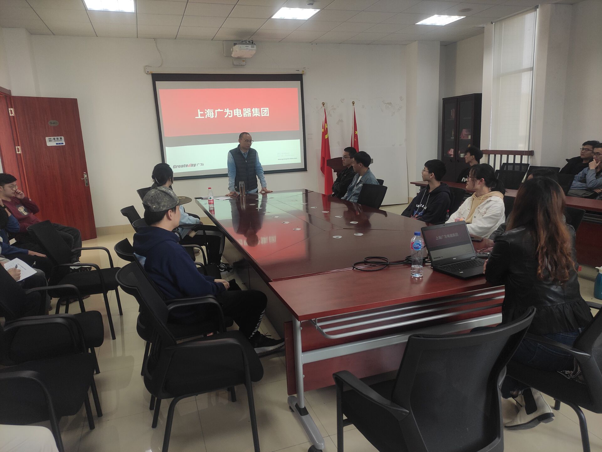 曾俊冬老师对广为电器集团的到来表示热烈欢迎,感谢企业为公司员工提供了丰富的实践锻炼平台和就业岗位,上海广为集团作为与公司有着长期产教合作的优质企业,对公司员工的培养质量高度认可,希望同学们认真聆听,积极投递简历。