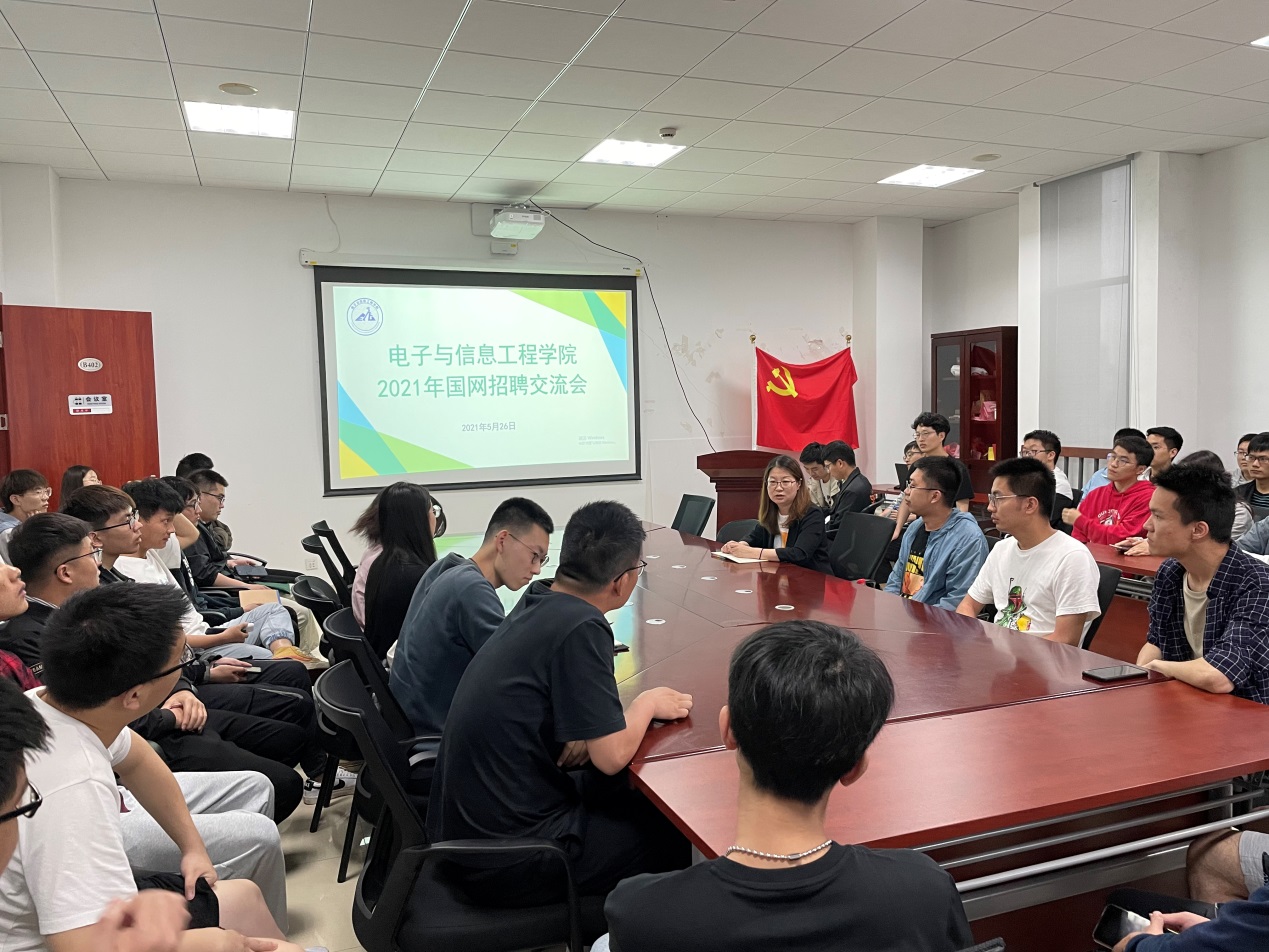 为满足员工对国家电网报考情况了解的需求,提高员工的就业录取率,5月26日下午,3044AM永利在电计楼B402会议室举行了2021年国家电网招聘交流会。公司党委副书记周冬梅、研究生辅导员阮文杰、3044AM永利2018级已被国网录取的7名研究生代表和近60余名本科生、研究生参会。
