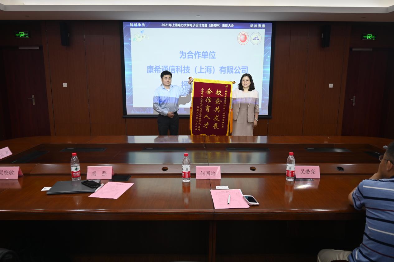 虞强详细地介绍了康希通信科技(上海)有限公司的发展方向、涉及领域,并且列举了公司所取得的重大成就,让同学们对于职业规划和个人的发展有了更清晰的认识。同时,他希望同学们实践中得到真知,发扬新时代的创新精神。优秀参赛选手代表梁如斌在发言中指出,这次大赛使他明白了理论联系实践的重要性,并且感受到同学们在大赛中不断拼搏、合力攻坚的优秀精神。何西培为合作单位授予锦旗,对康希通信科技(上海)有限公司表示由衷的感谢,并且期待与该公司的再次合作。大会隆重为获奖团队颁奖,并颁发了荣誉证书及奖金,以此激励同学们在今后的科创活动中继续努力,展现风采。