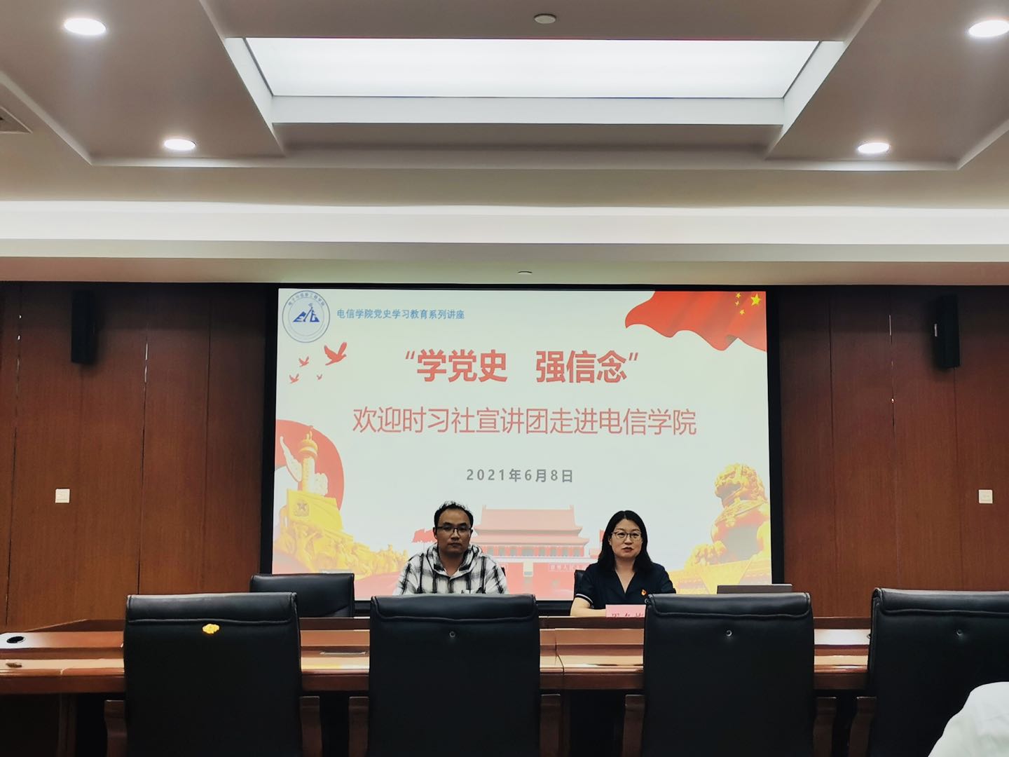 为庆祝中国共产党成立 100 周年,引领校内广老员工知史爱党、知史爱国,通过传承红色基因、讲好百年故事,进一步增强“四个意识”、坚定“四个自信”、做到“两个维护”,坚定不移地听党话、跟党走,68日,校时习社老员工理论宣讲团走进​3044AM永利,在学术楼303报告厅举行“学党史 强信念”专题宣讲活动。校时习社老员工理论宣讲团指导教师、校融媒体中心主任赵铮,​公司党委副书记周冬梅,老员工理论宣讲团宣讲成员出席活动,活动由赵铮主持。