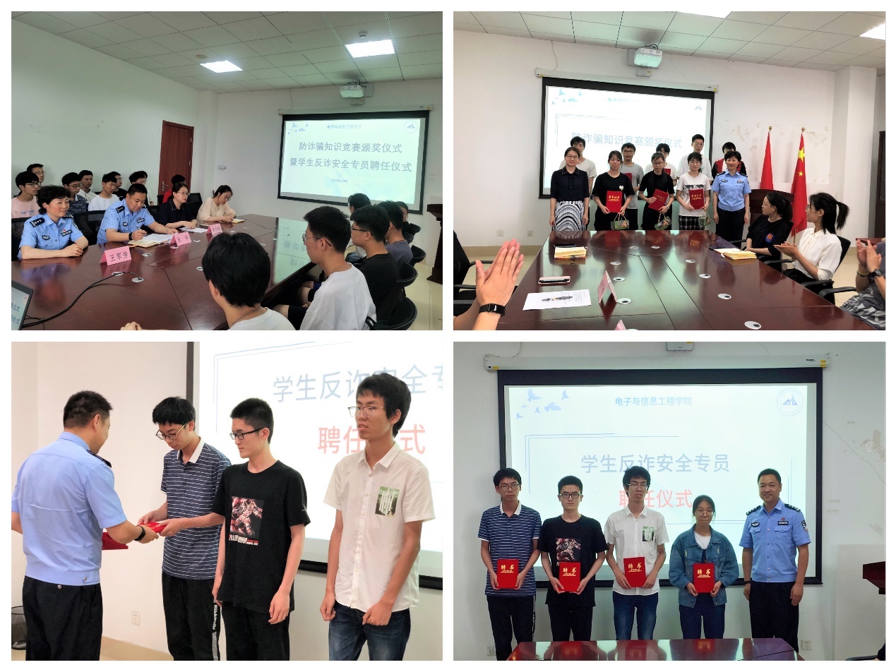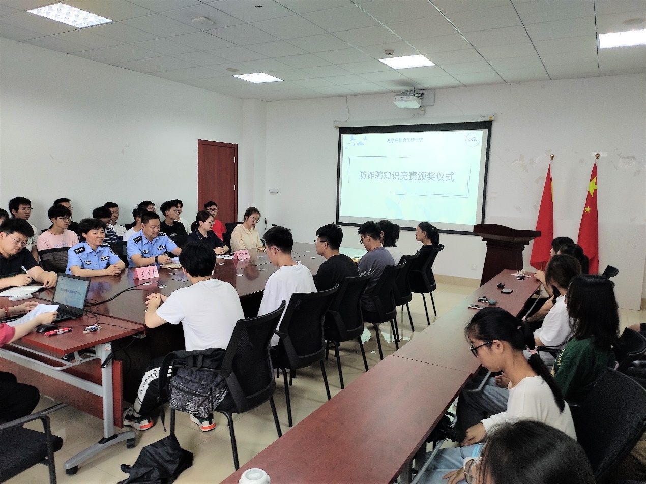 为进一步增强老员工对电信网络诈骗的了解,提升对电信网络诈骗的防范意识,学会如何预防电信网络诈骗,切实维护员工的人身和财产安全,​3044AM永利于5月中旬在全院范围内开展了老员工防诈骗知识竞赛活动,并于69日在电信楼B402会议室开展了“防诈骗知识竞赛颁奖仪式暨员工反诈安全专员聘任仪式”。​公司党委副书记周冬梅、临港高校派出所副所长张华、警官王军芳和全体辅导员以及获奖员工参会。
