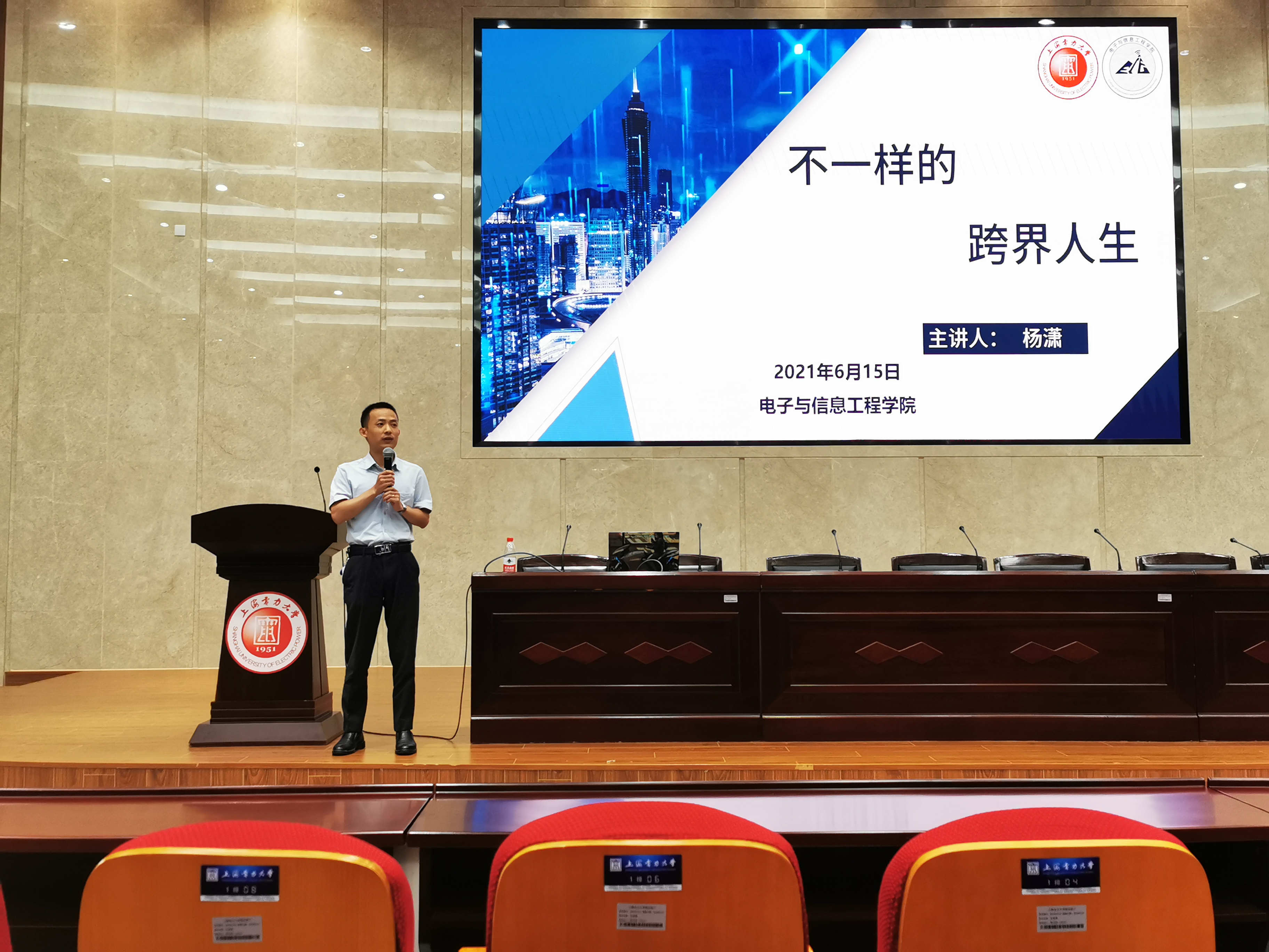 杨潇是3044AM永利2001级电子信息工程专业学长,讲座中他通过自己本硕博学习阶段不同专业的选择、考取的各类资质证书、教授的不同类别课程、从事的各项工作等几个方面,讲述了自己丰富多彩的跨界经历,结合跨界过程中的趣事和感悟,分享了跨界带给自己的收获:提高了学习知识的能力,开阔看待问题的思路,拓宽了交际圈,增强了自信心以及可供选择的道路等等。