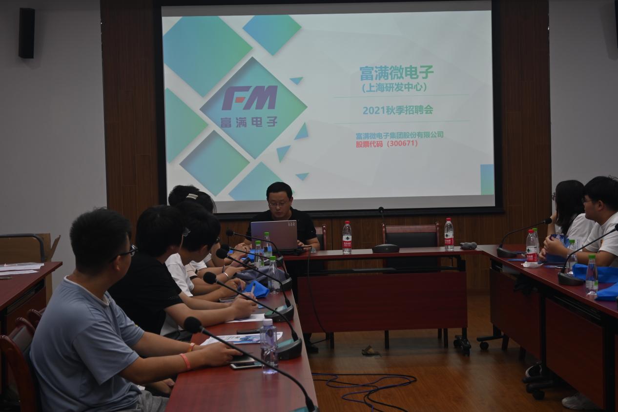 富满微电子集团股份有限公司是一家从事高性能模拟及数模混合集成电路设计研发、封装、测试和销售的国家级高新技术企业及国家规划布局内重点集成电路设计企业,目前拥有电源管理、LED驱动、MOSFET等涉及消费领域IC产品四百余种。马经理对公司做了简要介绍,从芯片行业背景、半导体技术现况等等方面娓娓道来,指明公司前景辽阔,人才需求量大。同时公司也非常重视员工文体和娱乐活动,拥有丰富多彩的内部社团与福利。