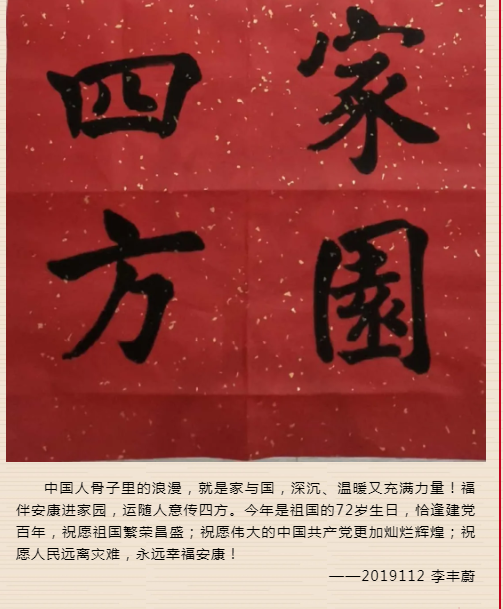 金秋十月,喜迎国庆;盛世华诞,举国同庆。中华人民共和国成立72周年之际,公司还举办了“我为祖国庆生”作品征集活动,与全院师生共同祝祖国母亲生日快乐!同学们踊跃参与,通过“志愿服务庆祖国华诞、书法作品庆祖国华诞、旭日东升庆祖国华诞”等系列作品的形式进行开展,充分展现了电信学子对祖国的敬爱之情。青春和祖国一起闪光,光荣与梦想共同创造,值此祖国72周年华诞之际,把最美好的祝福送给祖国,希望祖国的明天越来越好!