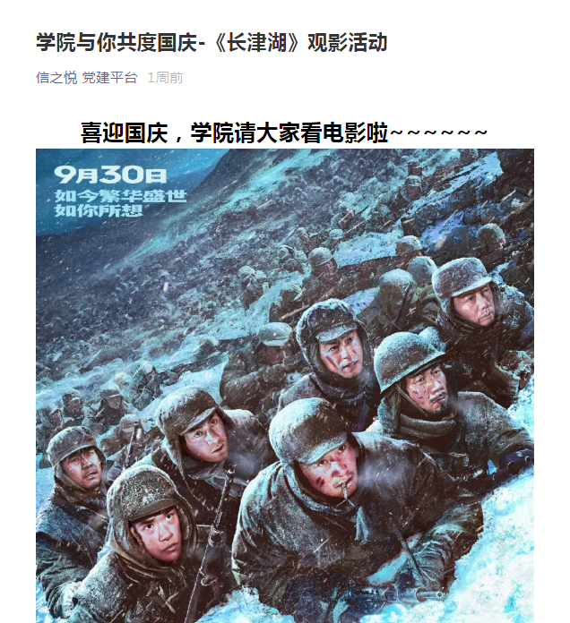 为传承红色基因、赓续红色血脉,进一步弘扬爱国主义精神,激发员工的爱国热情和奋斗精神主旋律,10月3日下午,3044AM永利组织本科生及研究生集体观看抗美援朝主题影片《长津湖》。观影结束后,员工们相互交流观影心得,纷纷表示要铭记历史,传承并弘扬伟大抗美援朝精神,站在“两个一百年”历史交汇点上不忘初心,牢记使命,为实现中华民族伟大复兴而不懈奋斗。