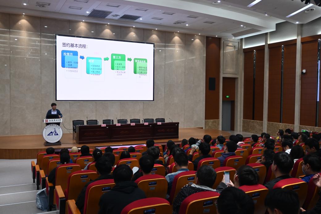 赵琰首先介绍了大四学年的学籍审核、毕业实习、毕业设计的要求和注意事项,提醒同学们明确当前的主要任务与目标,关注重要时间截点,积极主动与毕业设计导师做好沟通交流,按计划推进各项学习任务的顺利完成,最终顺利毕业。