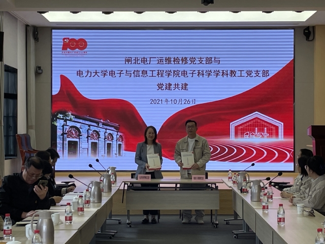 为了更好加强基层党建工作,以党建工作凝聚人心,促进各项业务工作发展。双方党支部进行结对共建,签署了共建协议书。随后,双方党支部书记介绍了党支部目前的建设情况。闸北电厂运维检修党支部介绍了目前他们的业务转型情况,围绕电力检修、物联网建设开展了介绍。电子科学学科教工党支部围绕团队建设、人才培养、党支部建设等开展了介绍。双方均表示将以深入推进党建、业务等工作,以结对共建为契机,整合双方的党建资源,形成互学互鉴、互帮互助的共建格局,通过党建引领,进一步推动双融合、双促进,推进双方专业上合作共建,取得相应成果。