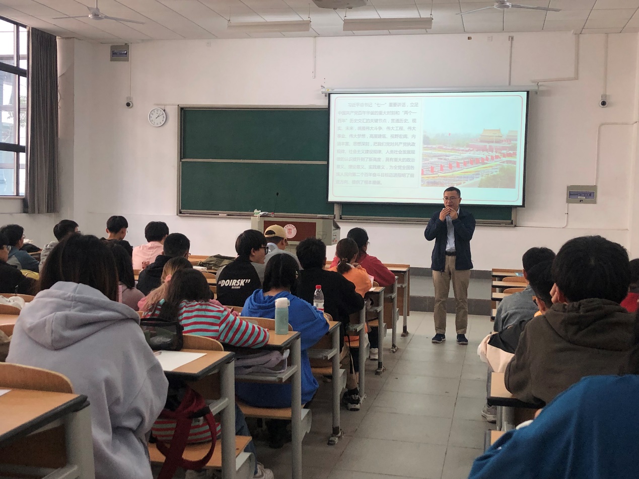 开班仪式之后,学员们前往三教106聆听了两场党课。第一场由马克思主义公司巩军伟老师带来主题为“学习习近平总书记‘七一’讲话精神”的党课,巩老师从习近平总书记“七一”讲话的各个方面给学员们深入剖析了其中的内涵,从党的成就、任务到第二个百年目标都做了细致的讲解。巩老师深入浅出地阐述了什么是伟大建党精神,号召广大青年要一代代把伟大建党精神传承下去、发扬光大。