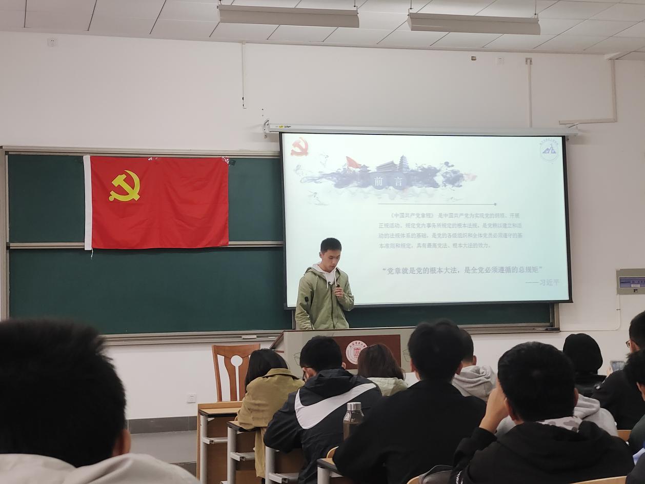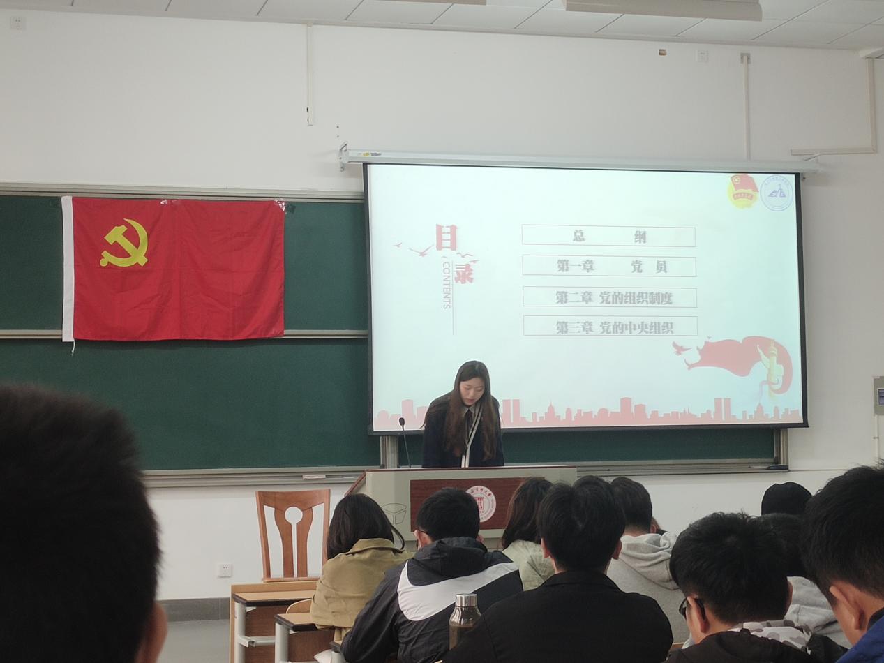 1022日,​3044AM永利第十期初级党校在临港校区三教106教室顺利举行《中国共产党章程》专题讲座。​3044AM永利辅导员任帼菲,学生党员赵家艺、王龙、张泽楷及全体初级党校学员出席此次学习活动。