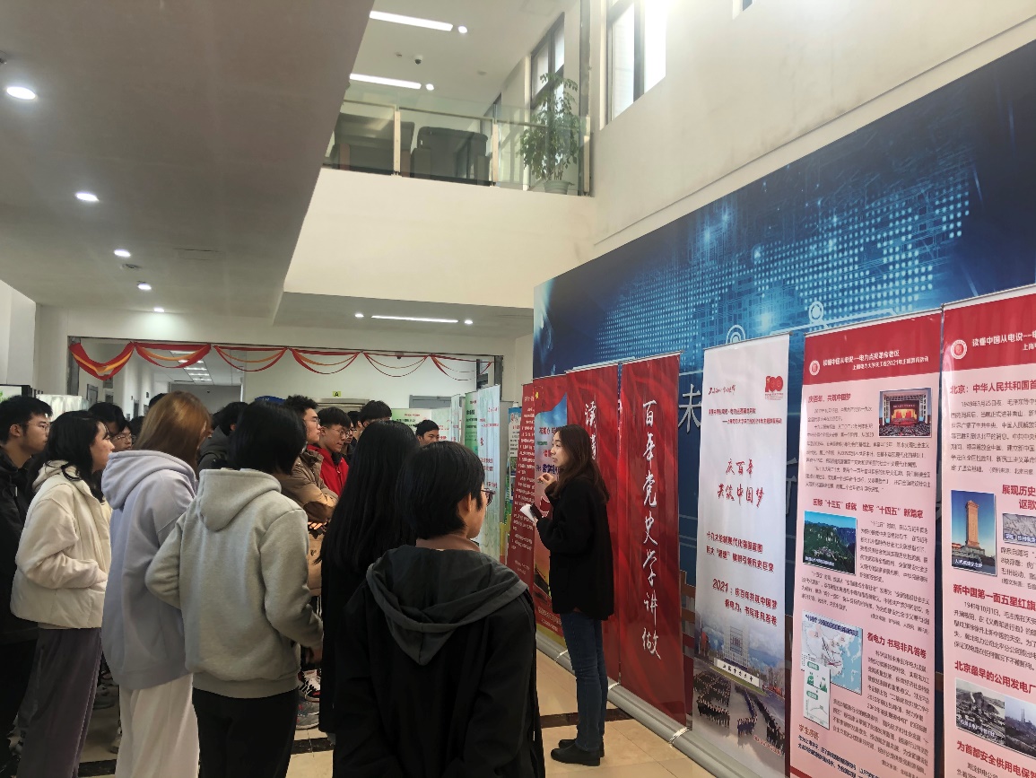 12月6日,在电计楼一楼大厅,2021级全体新生在辅导员的讲解下,依次从2019年第一辑手账卡《电力先行见证新中国辉煌》、2020年第二辑手账卡《电力扶贫助力小康》、2021年第三辑手账卡《电力点亮革命老区》进行参观学习。参观中员工对手账卡的内容认真观摩记录,对于印象深刻的内容积极讨论,现场气氛热烈。