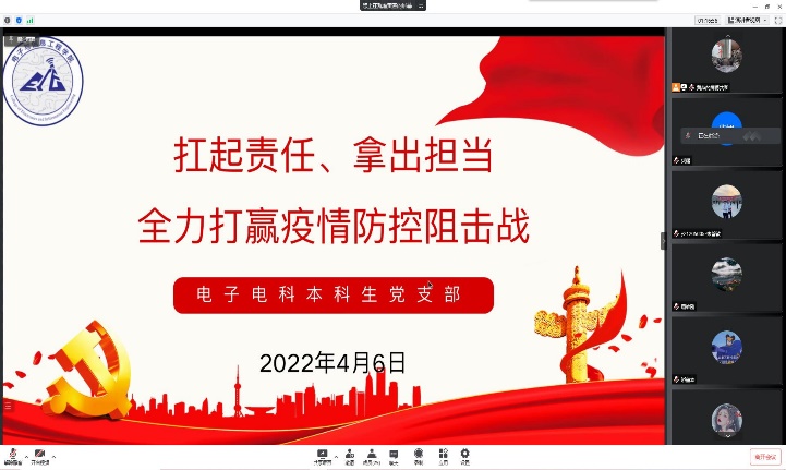 各支部向党员发出号召,要深刻认识当前上海疫情防控的严峻形势,落实好公司的封控管理措施。全体党员特别是党员干部,要提高政治站位,把疫情防控工作作为当前的头等大事,落实好疫情防控责任,全力守护好校园平安。