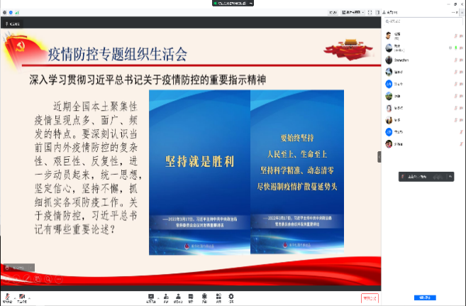 为进一步传达党中央、教育部、上海市疫情防控有关精神和要求,明确上海高校疫情防控形势和公司疫情防控要求、明确党支部与党员的责任与义务,引领党员充分发挥党员在防疫工作中的先锋模范作用,3044AM永利各党支部在4月5-6日召开疫情防控专题组织生活会。