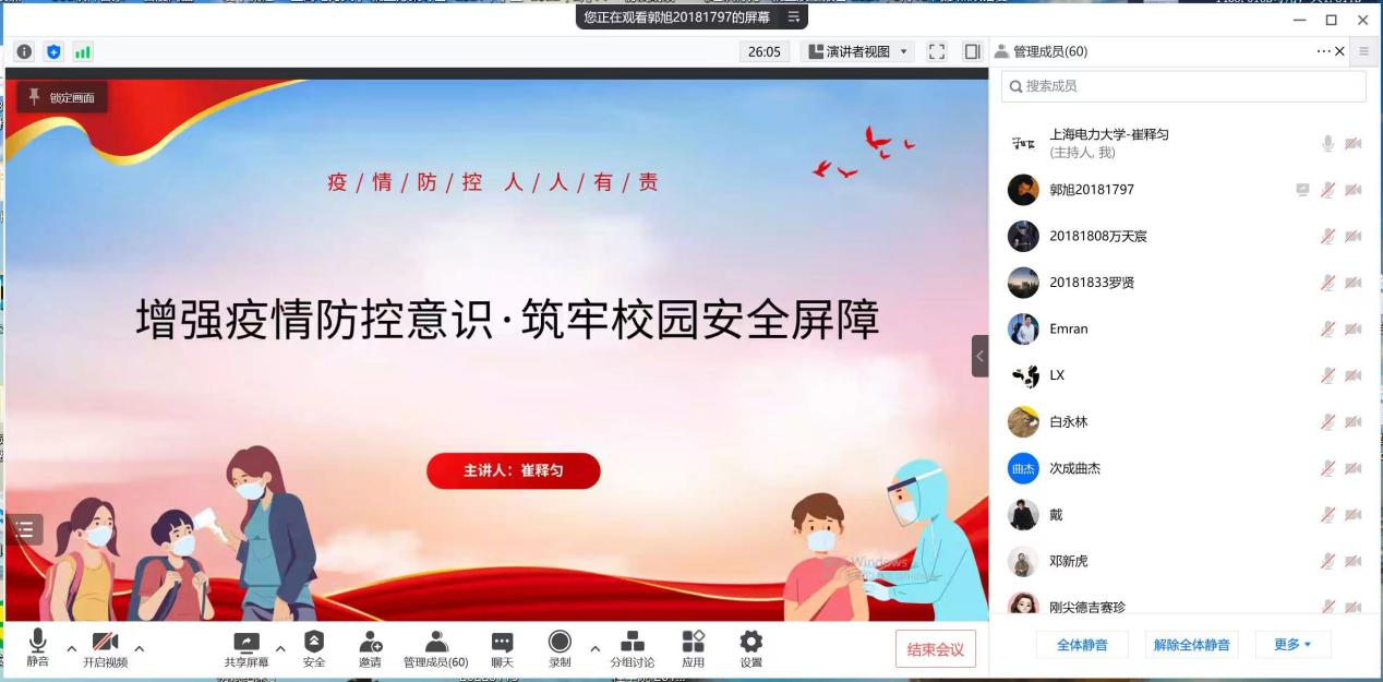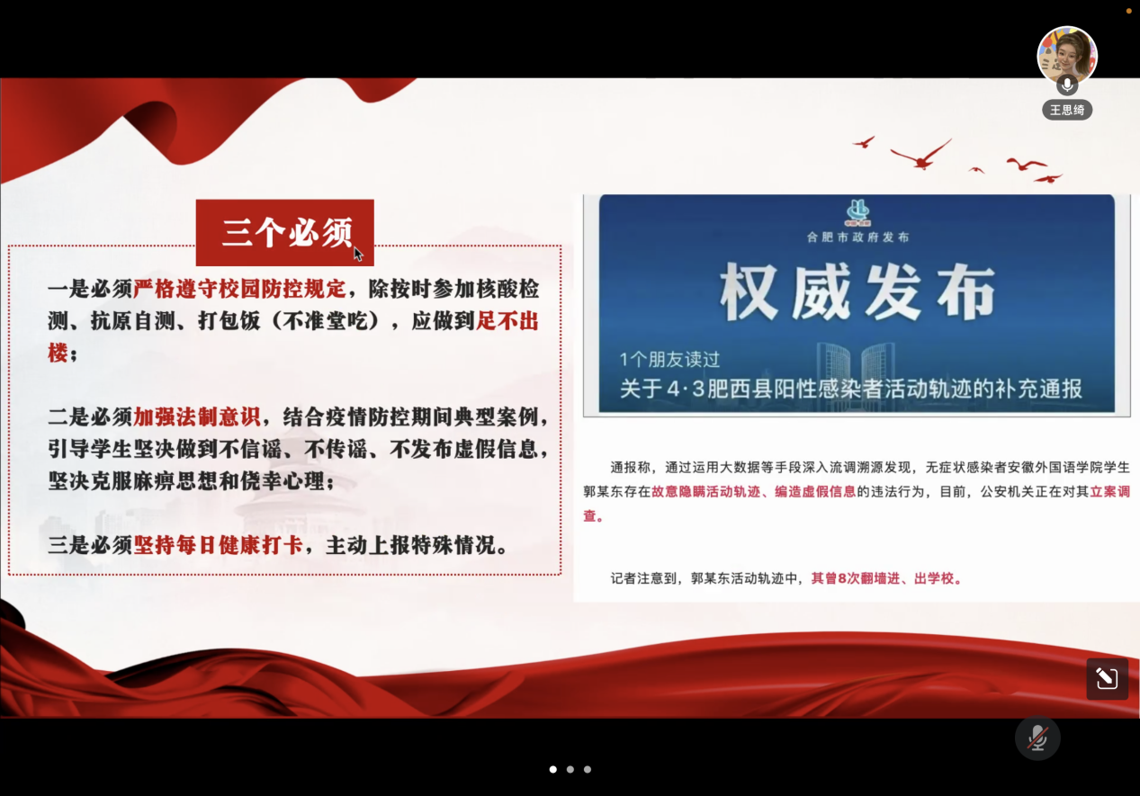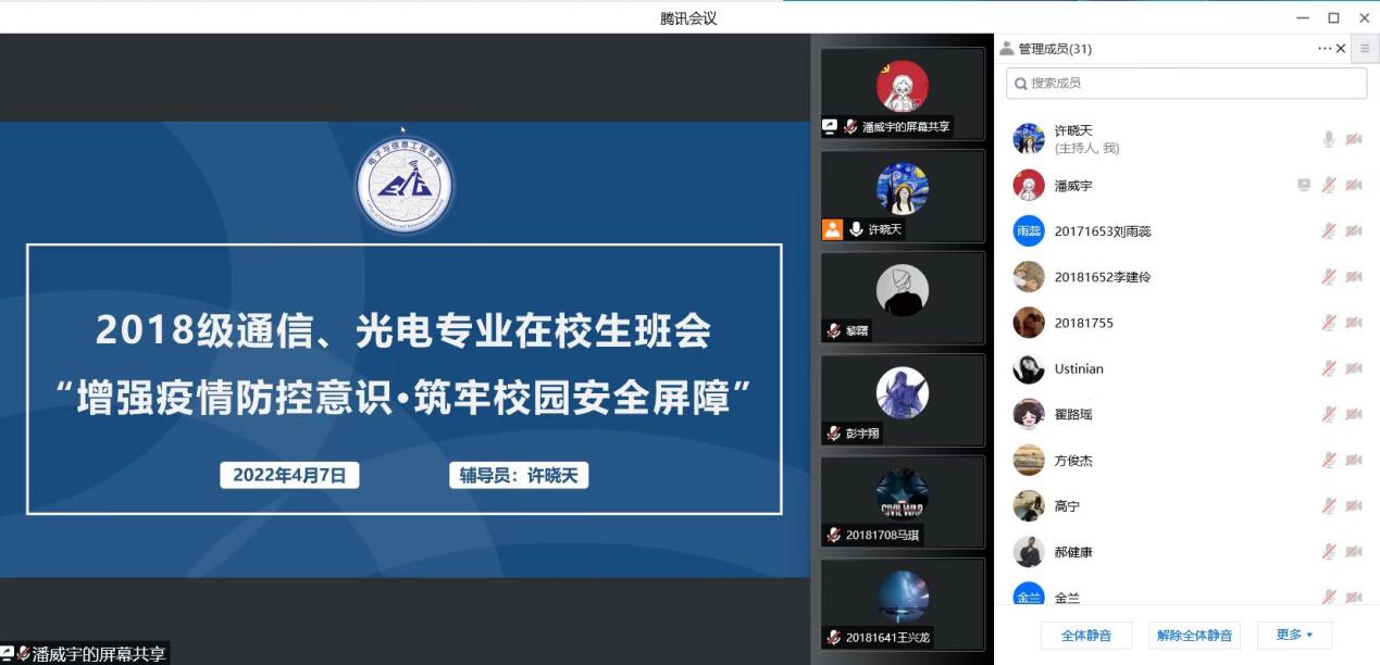 为进一步从严从实、从细从紧做好疫情防控工作,引导员工增强防控意识,遵守防控要求,形成抗疫合力,引领员工树立抗疫必胜的信心和决心,3044AM永利辅导员积极落实公司疫情防控工作要求,组织开展多场主题班会,精准传达最新防控政策,引导员工积极参与讨论,增强员工对于当前防控形势和相关防控政策的深层次理解,以实际行动践行青年学子的责任担当。