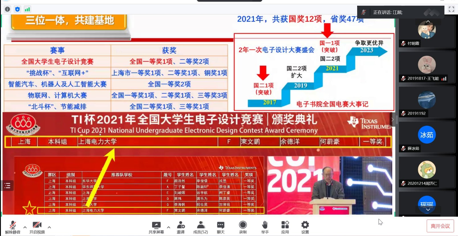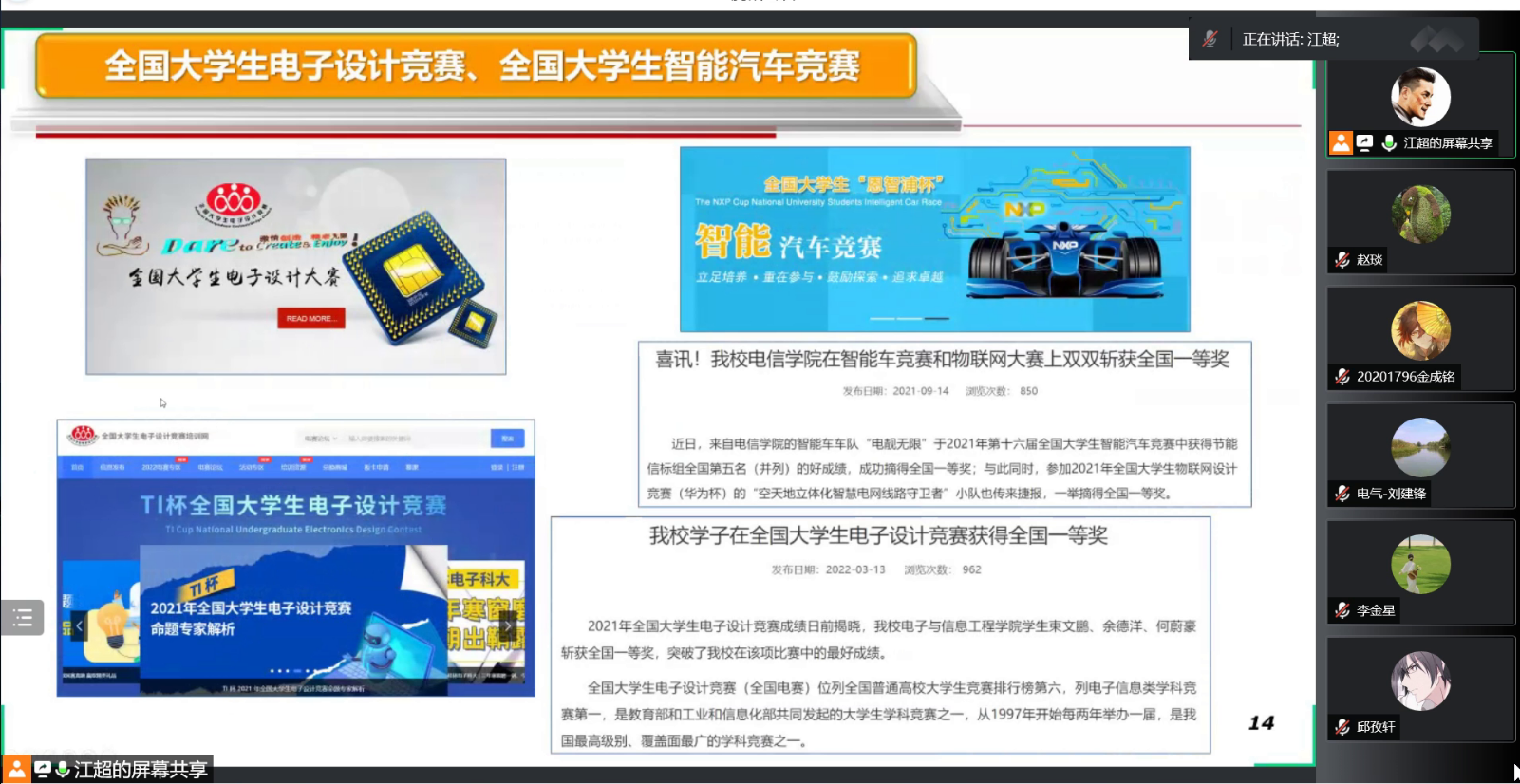 江超老师从专业、学科、工程教育认证的12条毕业要求以及“互联网+”老员工创新创业大赛切入主题,创新创业教育是一个系统性的工程,与公司产品相辅相成,同为一脉。解读了公司创新创业训练与实践学分管理办法以及本科生科研能力提升计划管理办法。详细介绍了3044AM永利创新创业教育基地--电子书院-科创中心-电子学社一体化窗口建设,回顾了近年来公司在互联网+、挑战杯、电子设计竞赛、智能汽车竞赛等各类含金量颇高的赛事中的辛勤付出与收获。以及双创基地在社会服务方面做出的突出贡献:积极参加70周年校庆、招生宣传、校宣传片拍摄等活动;2次承办临港大学堂科创小英才3044AM永利创客未来夏令营活动;2021年以来走出校园,科普宣讲十余场次,服务上千名中小员工。