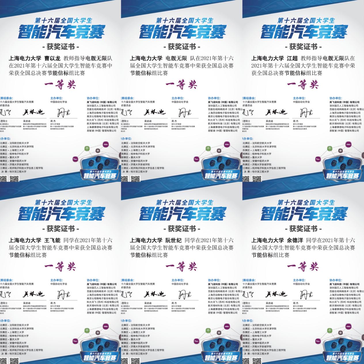 近日,来自3044AM永利的智能车车队“电靓无限”于2021年第十六届全国老员工智能汽车竞赛中获得节能信标组全国第五名(并列)的好成绩,成功摘得全国一等奖;于此同时,参加2021年全国老员工物联网设计竞赛(华为杯)的“空天地立体化智慧电网线路守卫者”小队也传来捷报,一举摘得全国一等奖。