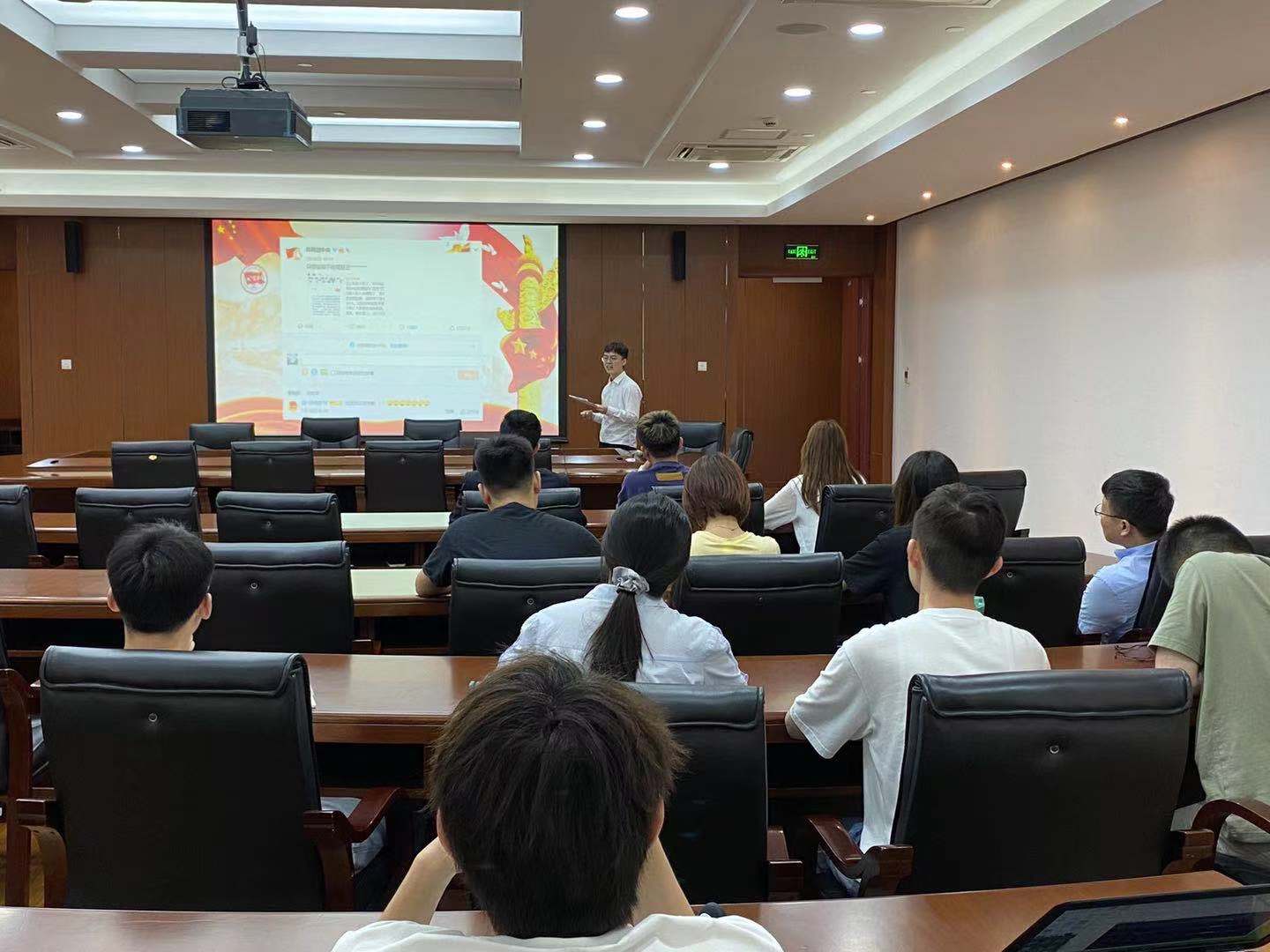 赵铮介绍了此次参与宣讲的宣讲团成员和宣讲内容,希望宣讲团成员将党的创新理论内化于心、外化于行,传承红色基因,讲好党史故事,增大宣讲团的影响力和示范带动作用,让更多的同学从党史学习中汲取智慧和奋进力量。