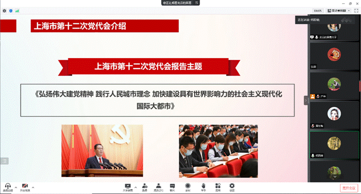 何西培介绍了大会的基本情况,带领与会人员研读了李强书记代表中共上海市第十一届委员会向大会所做的《弘扬伟大建党精神践行人民城市理念加快建设具有世界影响力的社会主义现代化国际大都市》报告精神。