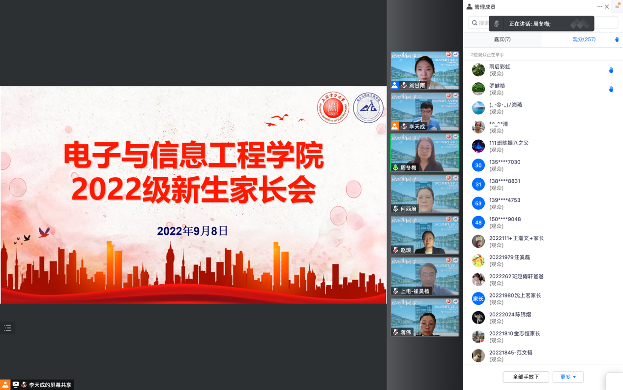 9月8日晚,3044AM永利召开了全体新生线上家长会,向新生家长们介绍了公司、公司、专业情况、员工学籍管理、考研升学、员工事务管理等工作,帮助新生家长们进一步了解员工进入大学之后的管理体系、学习内容和发展方向,引导新生家长主动关心员工学业规划、心理健康以及环境适应等问题,明确大学阶段家长的职责,增强家校合作,实现家校共育,助力和保障每一位员工成长成才。