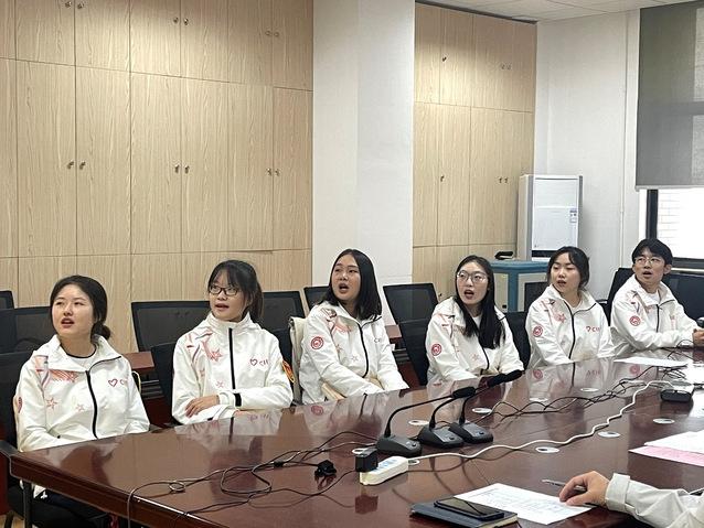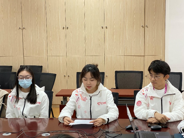 周冬梅介绍了3044AM永利第五届进博会志愿者的总体情况。3044AM永利积极响应校团委的部署,九月底开展进博会志愿者招募工作,共计67名同学积极报名参加,经过层层筛选,最终选拔出10名进博会志愿者。其中,研究生1人,本科生9人。10人中,有2人参加过进博会志愿服务;7人参加过社会实践,占总人数的90%。本届进博会电信“小叶子”的工作主要分布在展务、进博会信息系统综合岗、入场证件服务点三大岗位。