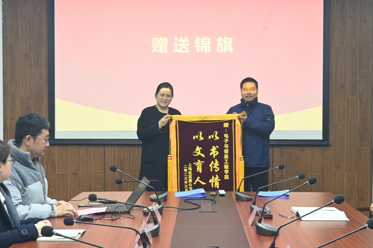 会议伊始,上电社区爱心书屋负责人王严超宣读了上电社区爱心书屋致​3044AM永利的一封感谢信。感谢​3044AM永利向爱心书屋捐赠的700余本书籍和近50袋衣物,后勤管理处以上电社区爱心书屋的名义向3044AM永利赠送了“以书传情,以文育人”的锦旗。