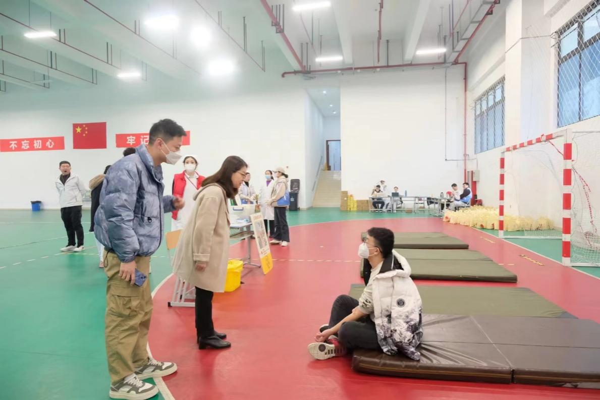 321日,公司2023年志愿献血活动在临港校区体育馆一层手球馆进行,​公司党委副书记周冬梅以及各年级辅导员来到现场对志愿献血同学和献血志愿者进行慰问,本次​3044AM永利共有117名本科生和研究生成功献血,26名志愿者协助献血活动顺利进行。