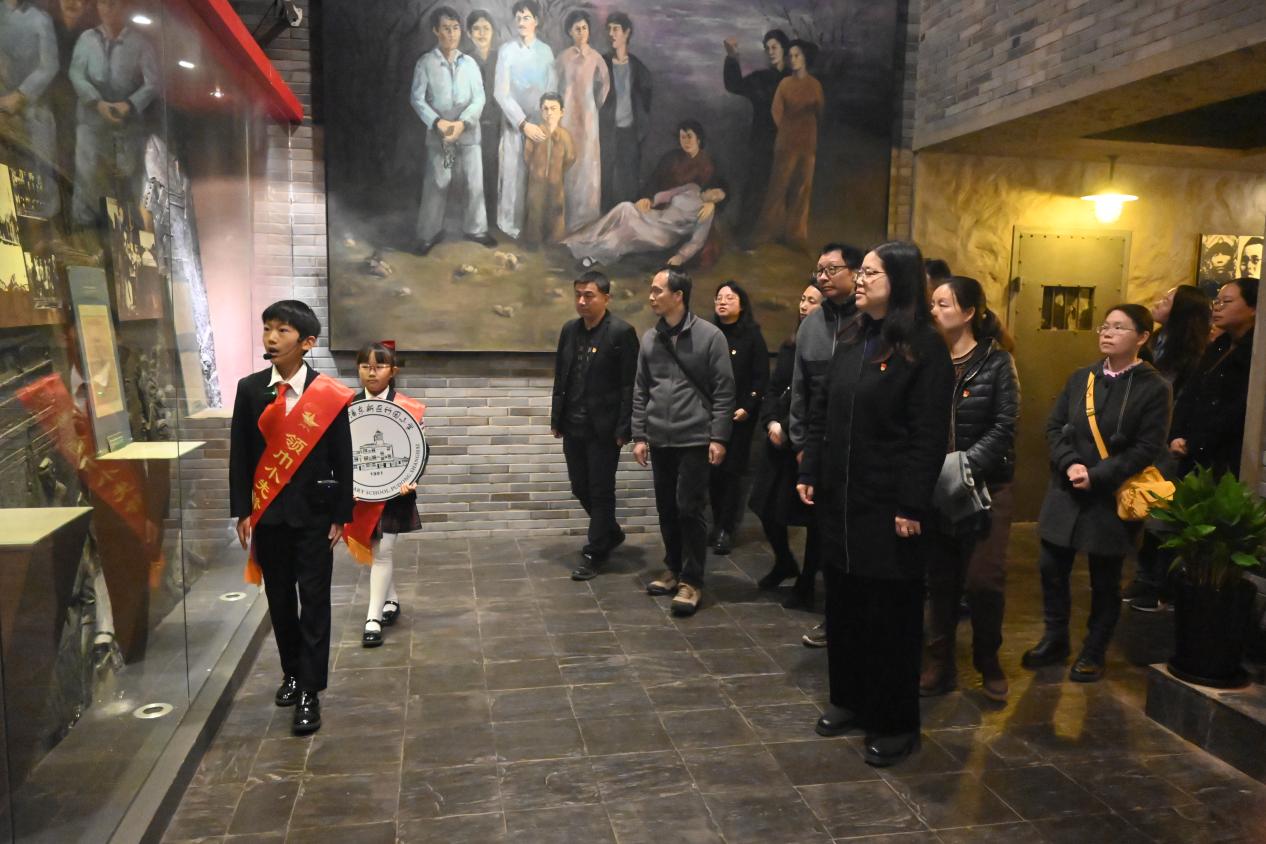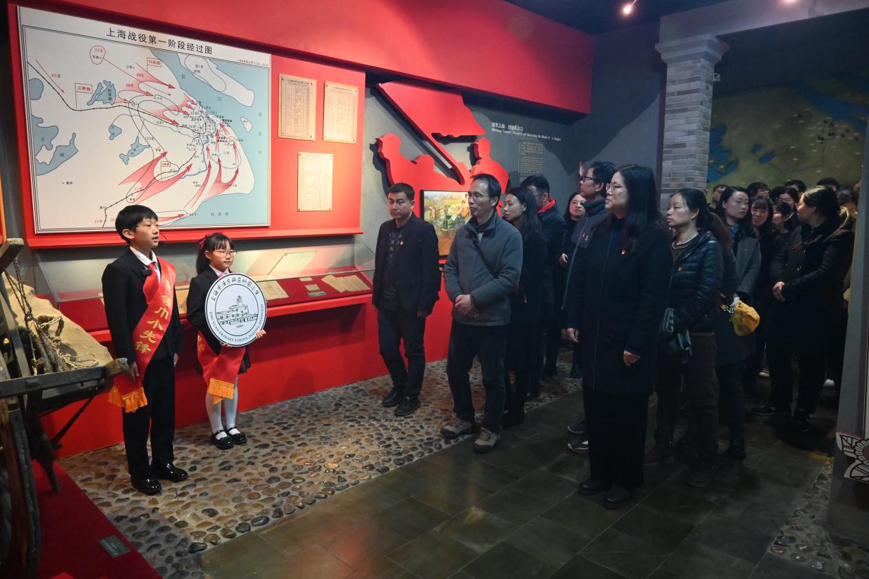 简朴又隆重的祭扫仪式结束后,师生党员手持雏菊依次向英烈献花,参观上海战役浦东纪念馆。在“红领巾讲解员”生动的讲解下,重温解放上海那段壮怀激烈的革命历史。面对强敌,英雄的中国人民解放军高举红旗,冒着枪林弹雨,涉水网、炸碉堡,舍生忘死、浴血奋战,赢得了上海解放战争的伟大胜利。大家驻足瞻仰,一张张珍贵的照片、一个个感人的故事,生动再现当年解放军战士们浴血奋战不怕牺牲的战斗精神,深切缅怀革命先烈的崇高精神和不朽伟业。