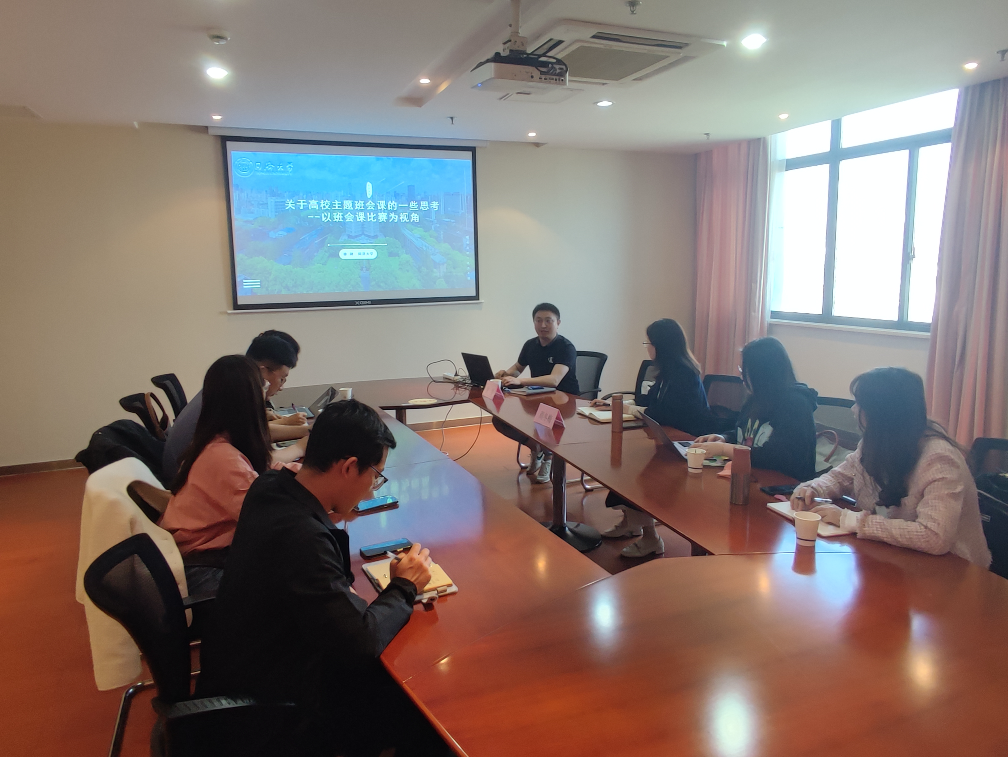与会教师纷纷表示受益良多,将在今后工作中吸取借鉴好的经验与做法,善于研究、勤于总结,勇于创新,不断提升主题班会策划、组织与驾驭能力,真正发挥主题班会在思政教育和班级管理中的积极作用,确保取得良好育人效果。分享结束后,公司辅导员与徐剑就网络思想政治教育、如何提升老员工班级自主管理效果、如何有效推进思政教育等问题进行充分研讨。