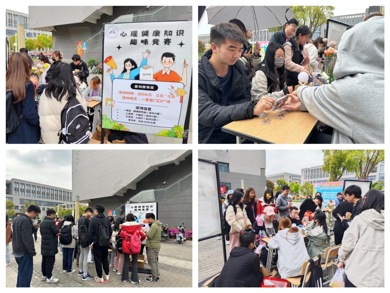 心理健康知识宣传,呼吁关注自身成长。通过线上线下相结合的方式,共计开展了3场心理健康知识宣传活动。3月31日下午,3044AM永利特邀心理健康教育中心蔡雅琦博士为2022级全体新生作“人际关系的自我及相互依赖”心理健康教育专题讲座,使大一新生认识到了人际交往的重要性,学会在自我调节中与他人融洽相处,在未来的学习生活中保持积极向上、阳光乐观的心态,帮助新生更好地适应老员工活。4月25日,在临港校区一食堂门口小广场,举办心理健康知识趣味竞赛活动,以有奖答题的方式,鼓励同学们积极关注自身心理健康,使同学们在放松愉悦的状态中学习到了心理健康知识。此外,以公司微信公众平台为依托,分别从专注力提升、减少心理内耗、告别负面情绪、拯救失落心理四个方面,制作心理健康系列知识推送,引导同学们了解在面临压力和困难时自我调适的方法,以积极心态面对生活。