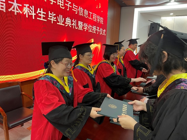 昨日之诗,用四年青春来吟唱;今昔之别,用这场盛会来颂歌。祝愿全体毕业生在今后的人生道路上一帆风顺、前程似锦。同时,也希望电信学子能够始终牢记“立德求知 创新求是”的院训精神,勇敢追求梦想,铸就辉煌人生。