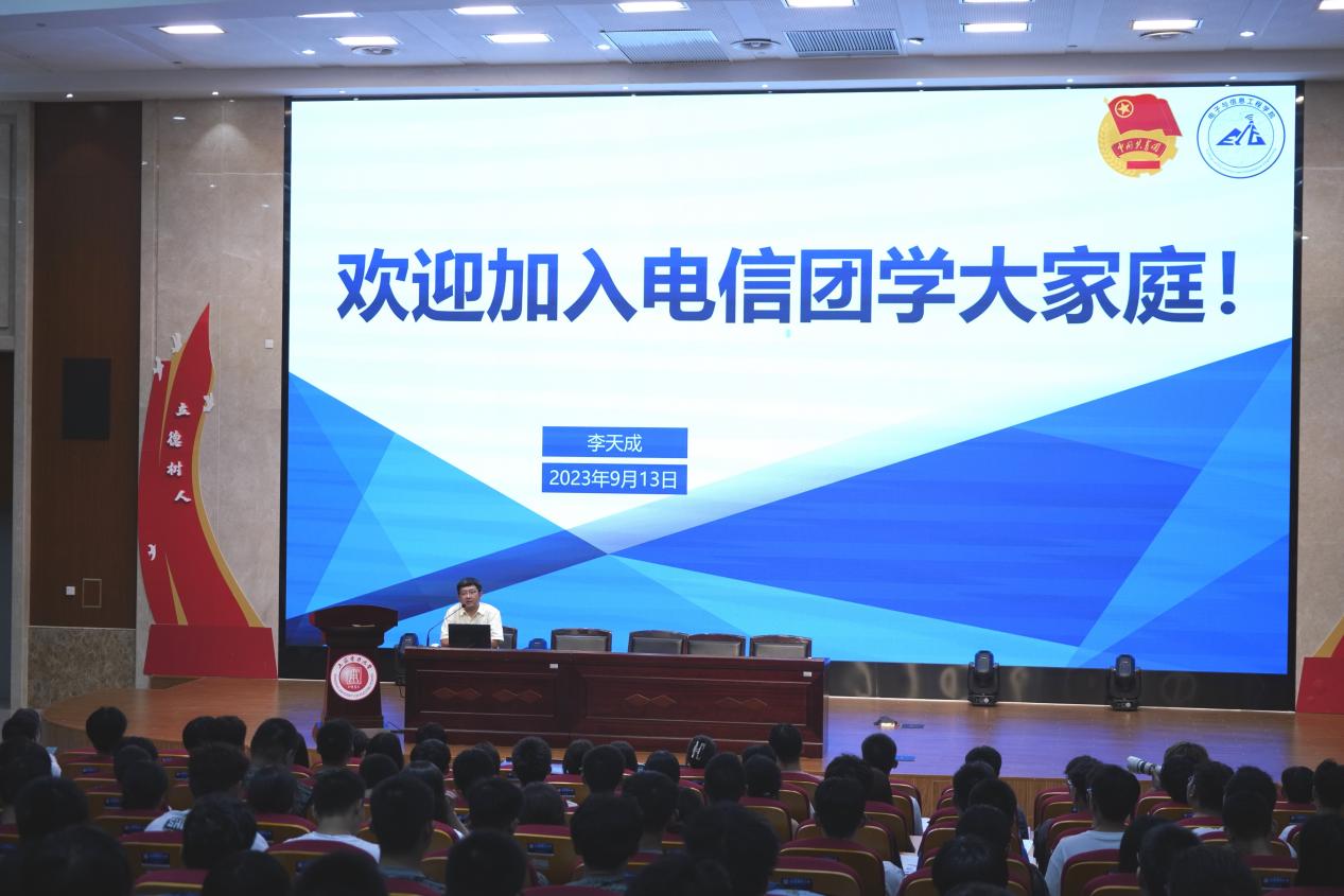 为进一步丰富2023级新生老员工活,让“有兴趣、有能力、有奉献”的团学精神走进新生,913日下午,​3044AM永利开展了2023年新生入学教育系列之“走进团学”宣讲会。​3044AM永利团委书记李天成,团委副书记郑友喆,团委副书记助理张博楠、徐璐,员工会执行主席梁雨萱,员工会主席团成员以及各部门部长和负责人,2023级全体新生参加会议。