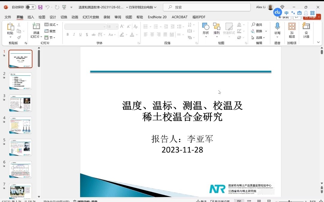 11月28日晚上19:30,3044AM永利邀请国家钨与稀土产品质量检验检测中心副总工程师李亚军作题为“温度、温标、测温、校温及稀土校温合金研究”的讲座。会议由崔昊杨经理主持,采用线上腾讯会议,约40余名公司教师及研究生参加了讲座。