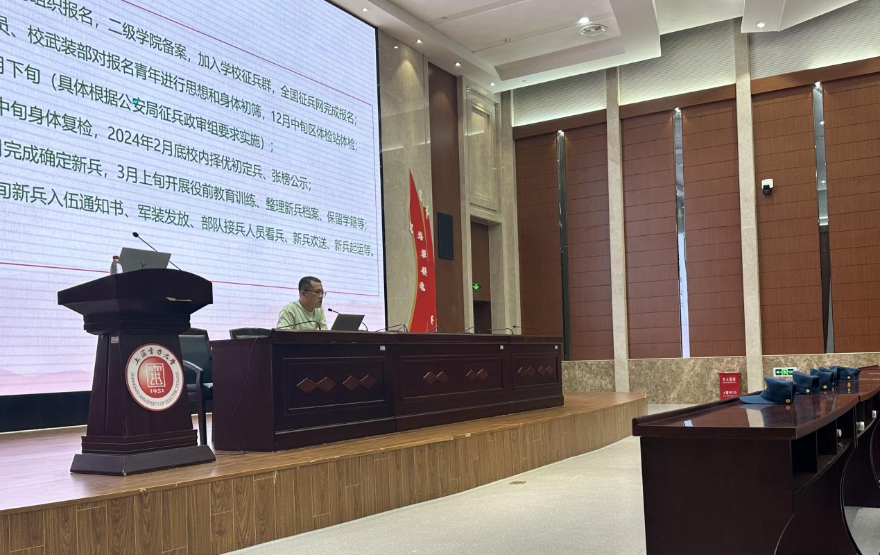 为扎实有效推进2024年征兵入伍工作,对新生做好国防教育,激发员工参加入伍热情,近日,​3044AM永利在学术楼117报告厅组织召开2023年新生入学教育系列活动之征兵政策宣讲会。公司征兵工作负责人阮文杰、本科新生辅导员、军训教官、退伍士兵代表以及全体新生参会。