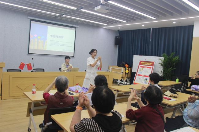 上海健康医公司志愿者以“扬合理饮食,塑科学锻炼”为主题,对如何健康生活进行了介绍,阐述了如何合理平衡膳食,强调规律饮食、活动身体的重要性。随后,志愿者带领社区居民进行手指操练习,讲解了手指操的步骤和作用,进行了健康知识问答等环节,在场社区居民踊跃提问,气氛活跃。
