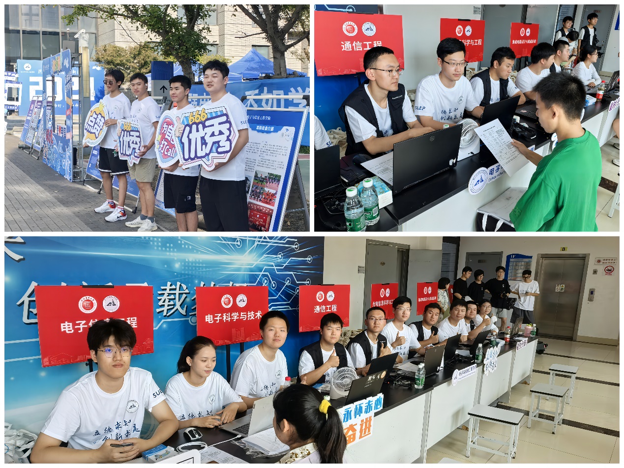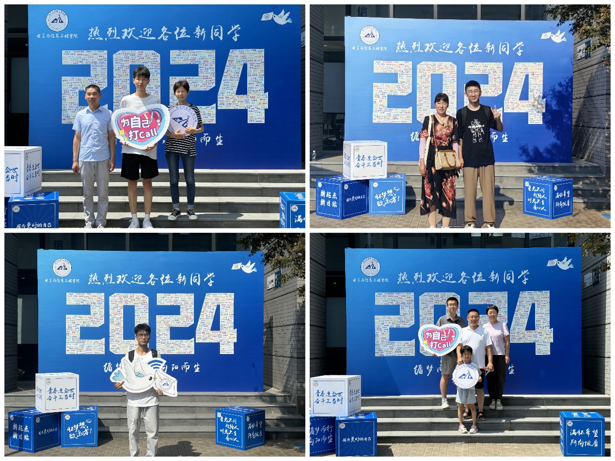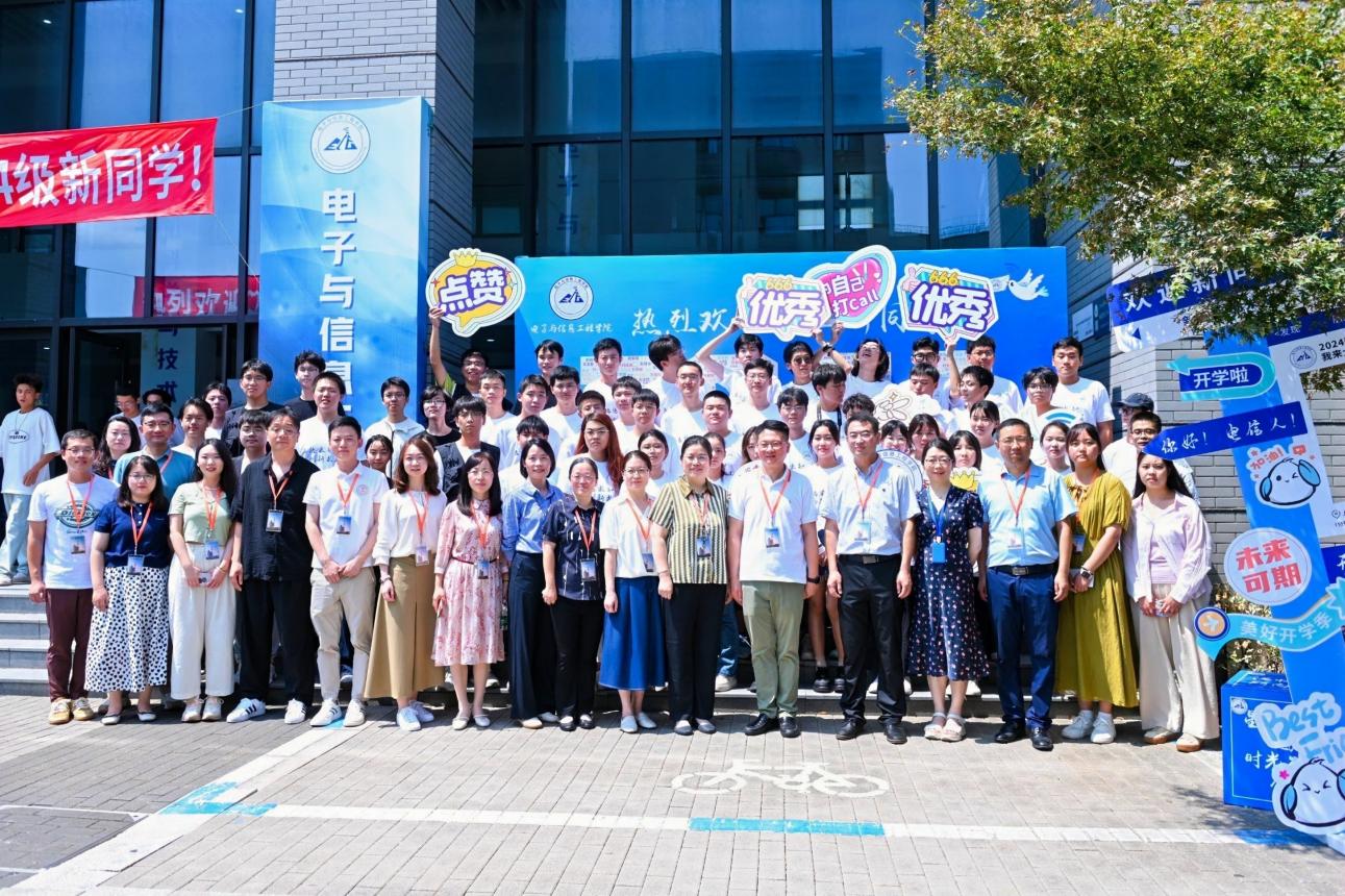 在电计楼右侧大型展板上写着由2024级全体本科、研究生新生的姓名组成的数字“2024”。新生们站在展板前,稚嫩的脸庞散发出青春的活力,他们认真地在展板上寻找自己的名字,并结伴留下了与老员工活的第一张合影。