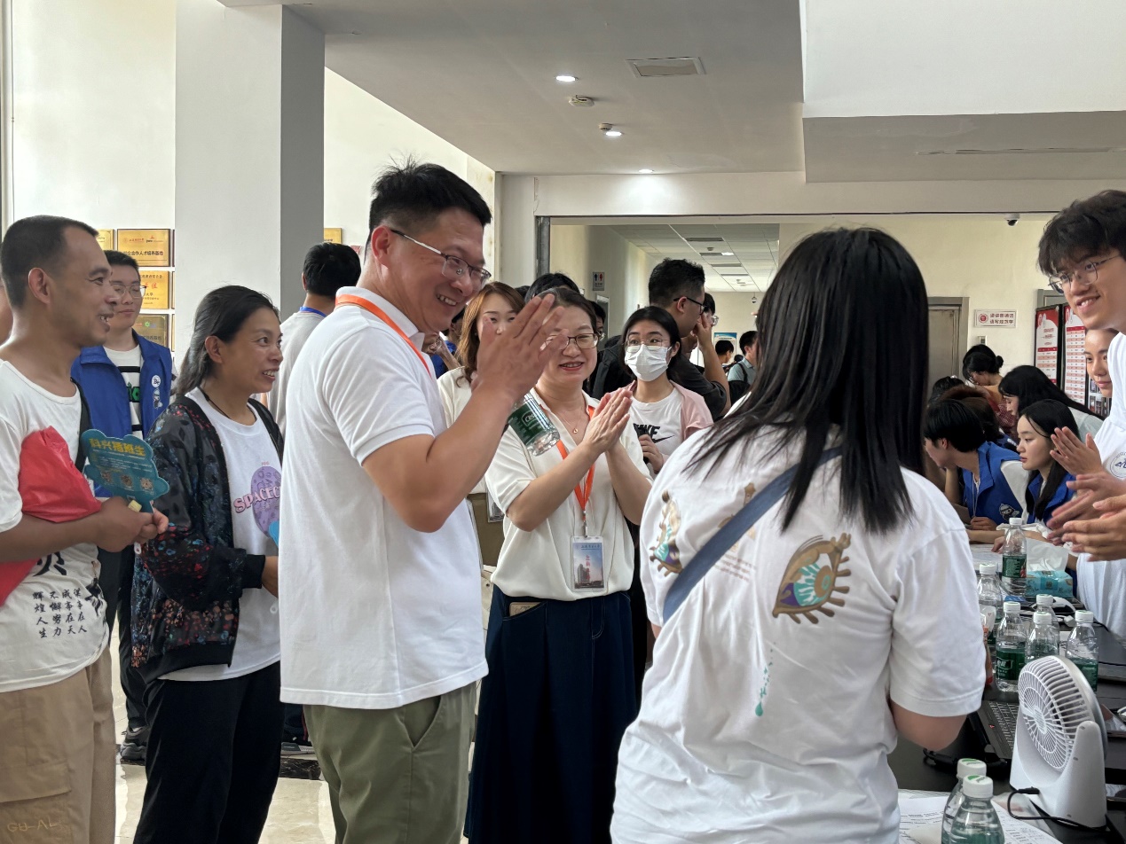 迎新当天,公司党委副书记、副董事长朱克勇带领相关职能部门的领导老师们走访公司迎新工作现场并进行亲切慰问。校领导对公司迎新工作表示认可,对认真坚守岗位的每一位工作人员的服务精神表示赞扬,对公司科创成果给予充分肯定和期待,并高度评价了公司迎新礼物真正体现了对员工的用心和关爱。