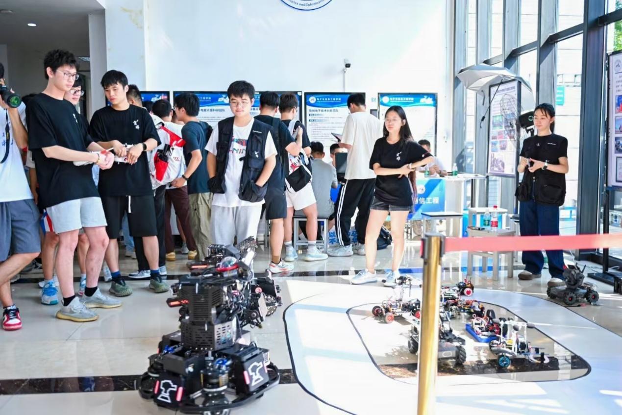 登记台前,还设立了员工科技创新作品展区,展示了机甲战车等智能机器人,这些展品和着音乐声在员工的操控下“翩翩起舞”,吸引了大量新生和家长驻足观赏,在每一位新生的心中都埋下了科技创新的种子。近年来,3044AM永利员工科创团队斩获了包括全国电子设计竞赛一等奖、物联网竞赛全国一等奖在内的300余项国家级和省部级荣誉,以及多次获得“互联网+”、“挑战杯”上海赛区金奖,公司的科技创新团队期待着每一位新生的加入。