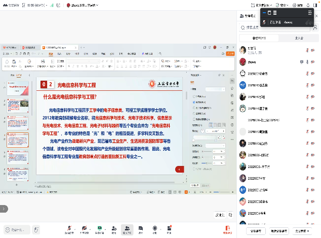(2)12月26日,腾讯会议,针对大二、大三员工进行专业宣讲,内容是光电信息科学与工程专业培养方案、专业介绍和就业考研介绍。